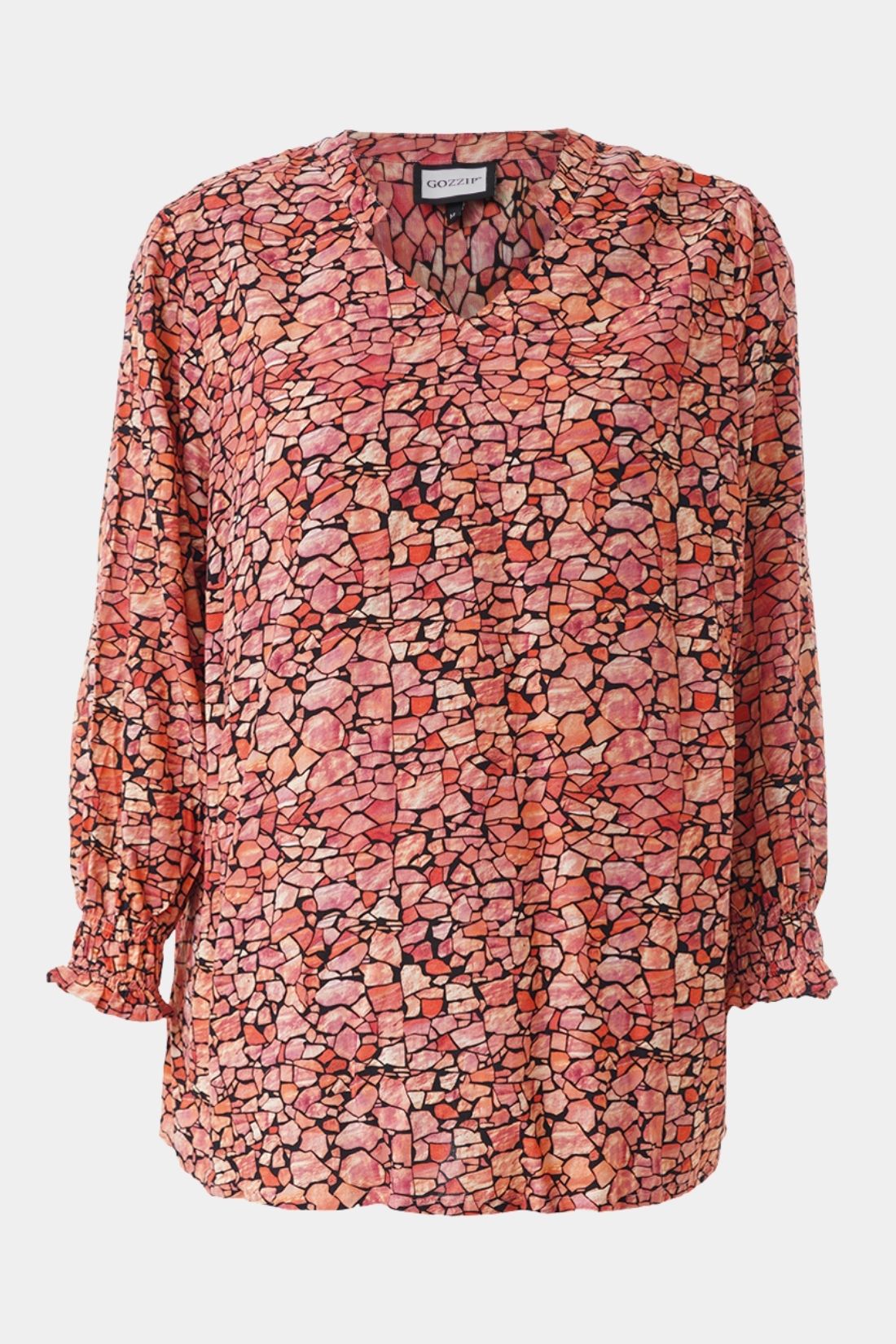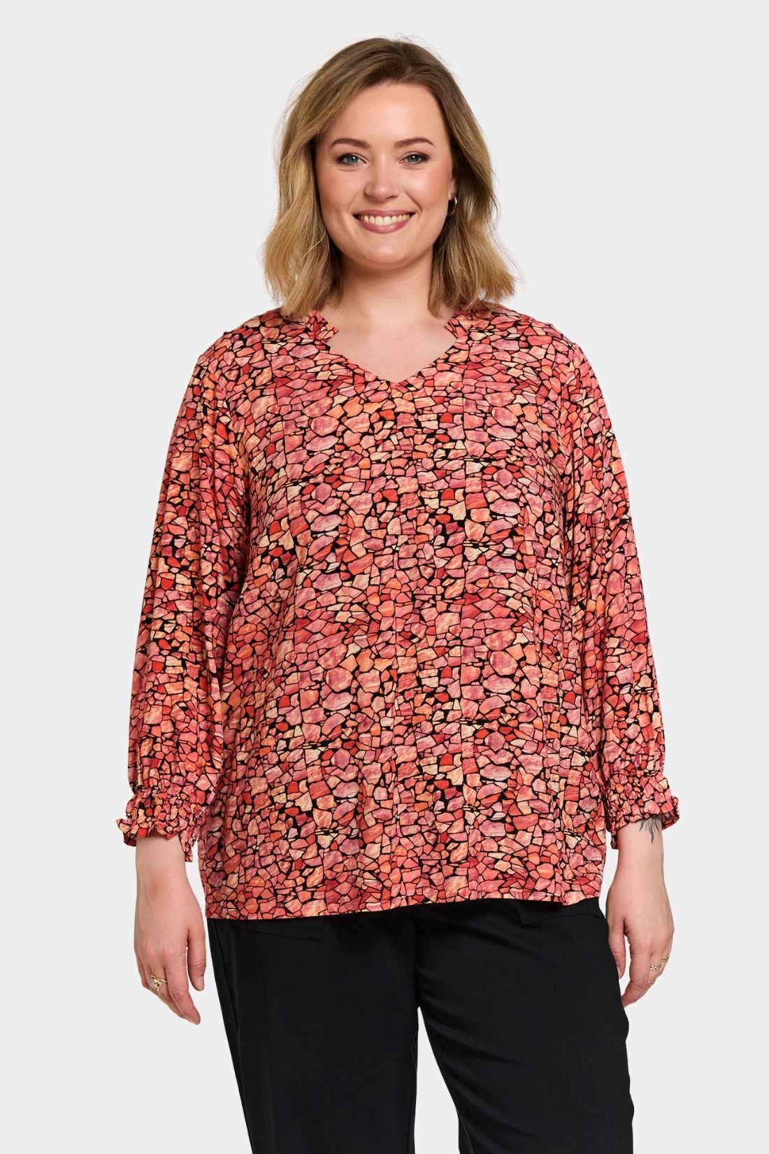 Bluse fra Gozzip i 100 % viskose med rødt grafisk print
