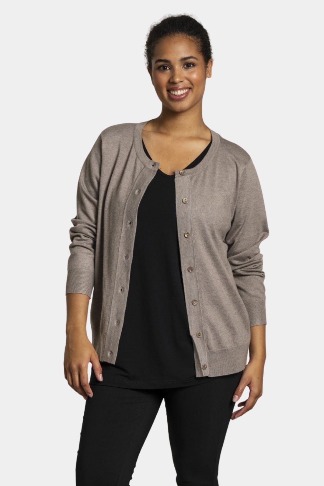 Skønneste cardigan fra Sandgaard. Klassisk snit med lang ærme, knapper hele vejen foran, rund hals og rib omkring ærme og talje. Syet i det blødeste viskose blandings stof.