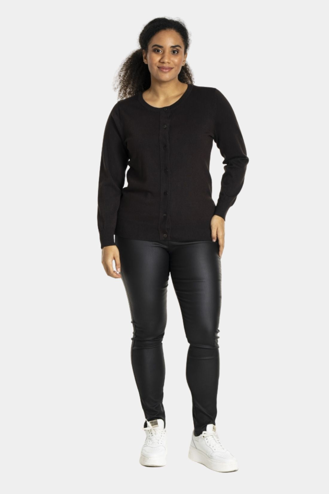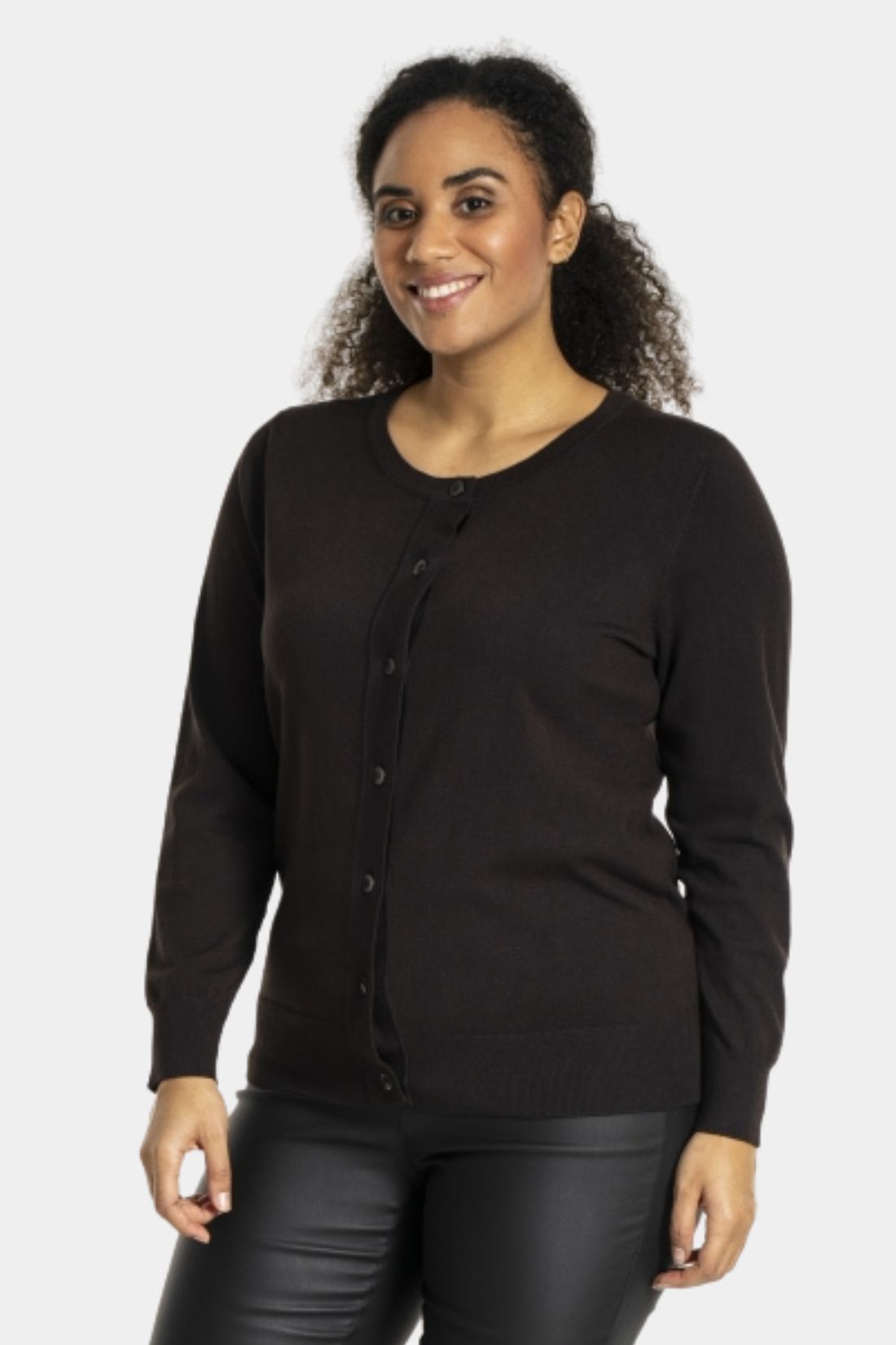Strik cardigan fra Sandgaard i mørk brun