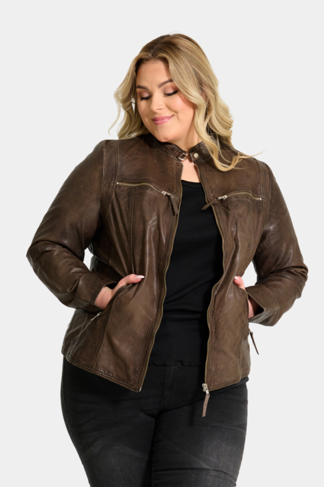 Jakken bliver bare bedre og blødere med tiden. Vær opmærksom på at ægte læder giver sig, og bliver med tiden ca en halv størrelse størrer.