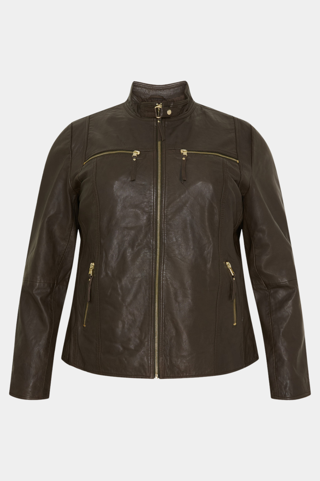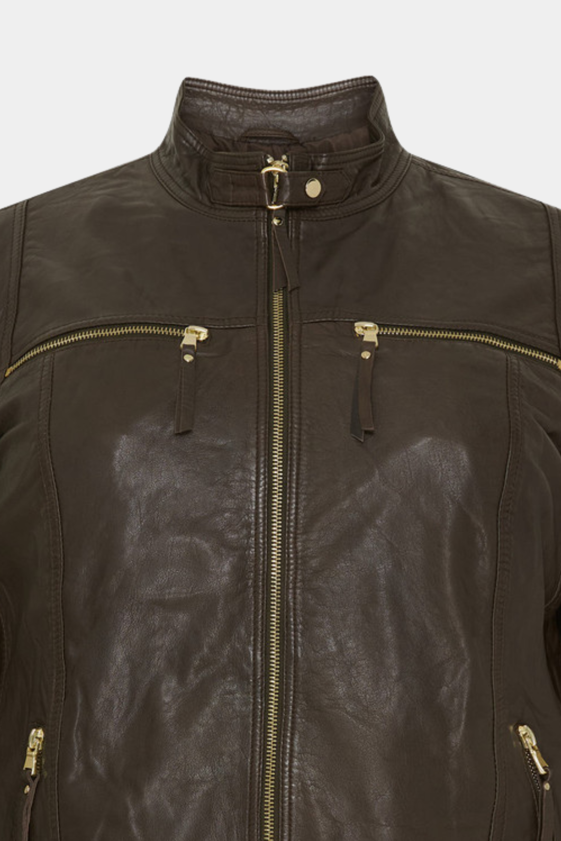 Lammeskindsjakke i mørk mandel brun med guld detaljer fra No. 1 by Ox