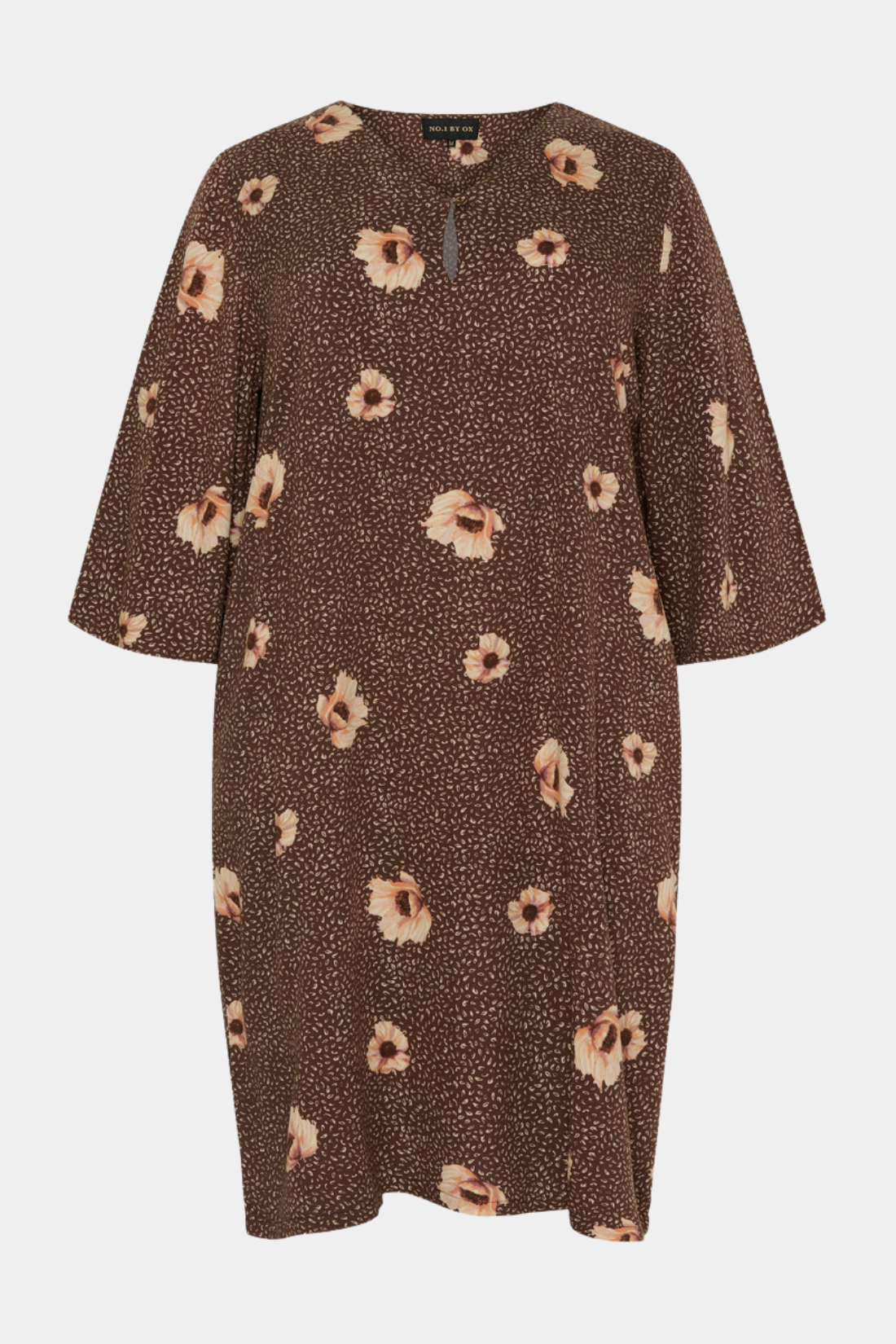 Tilføj denne smukke kjole til din garderobe. Kjolen er med blomsterprint og har ¾ løse ærmer. Med feminin v-åbning foran, som er suppleret med en sød knap detalje. Brug kjolen både til hverdagsbrug og festlige lejligheder.
