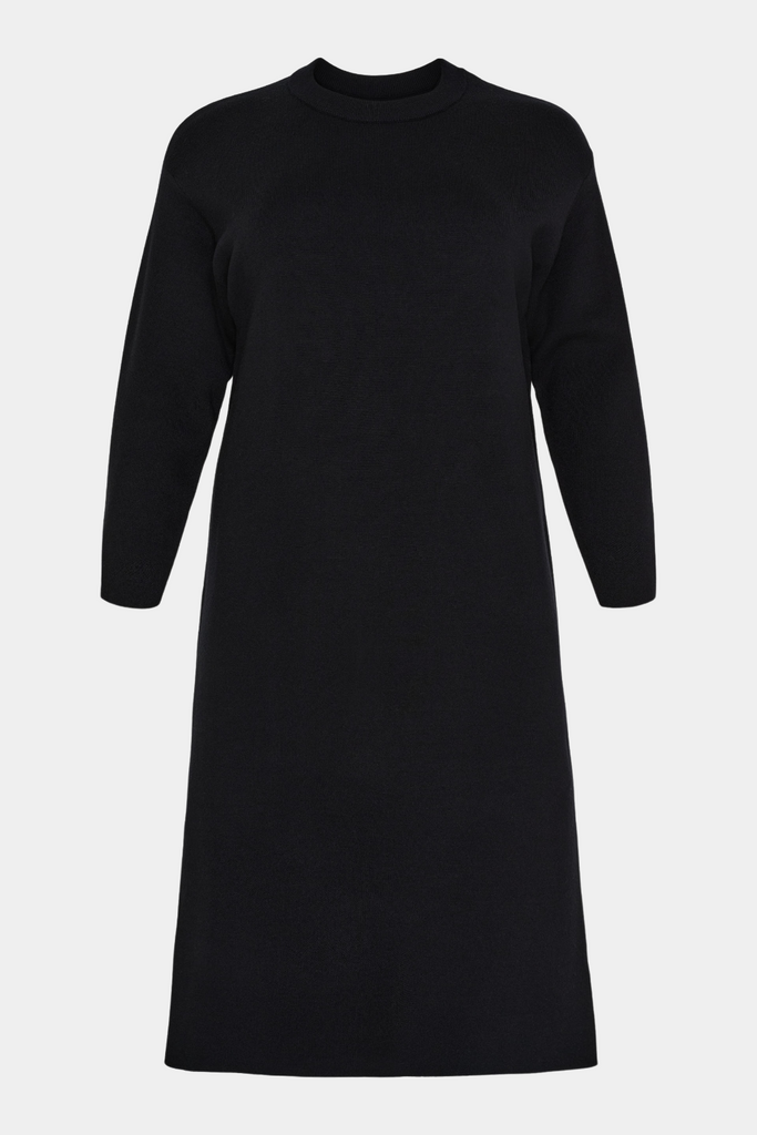 Blød og komfortabel strikkjole fra No. 1 by Ox med rund halsudskæring og lange ærmer. Den tætsiddende pasform fremhæver dine former på smukkest vis, men den elegante slids tilføjer et feminint touch.