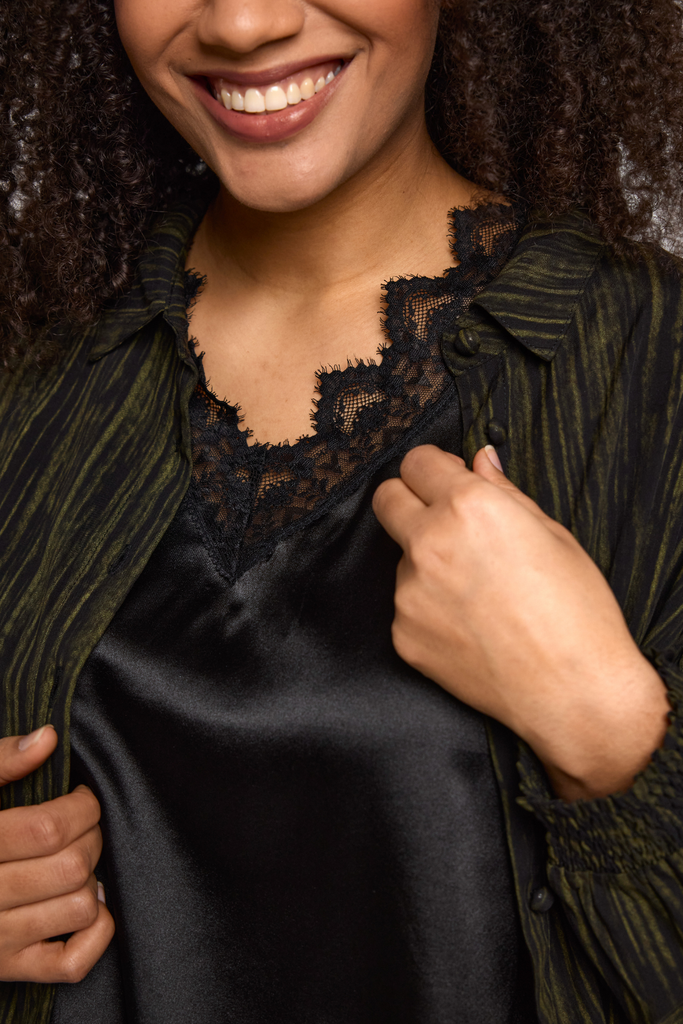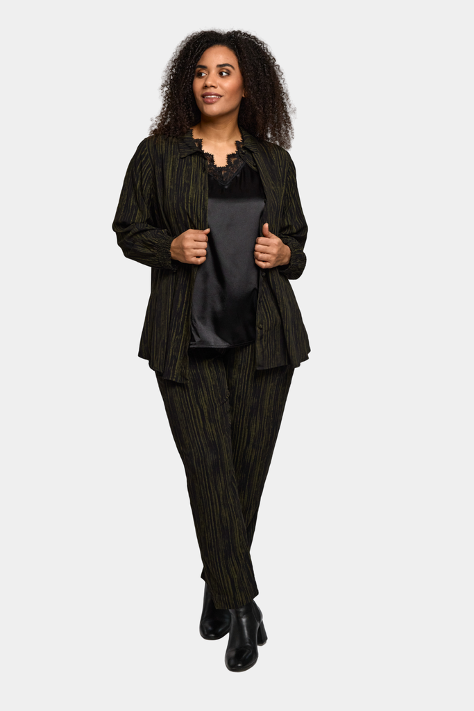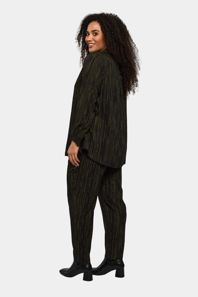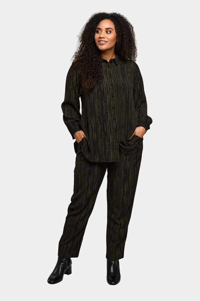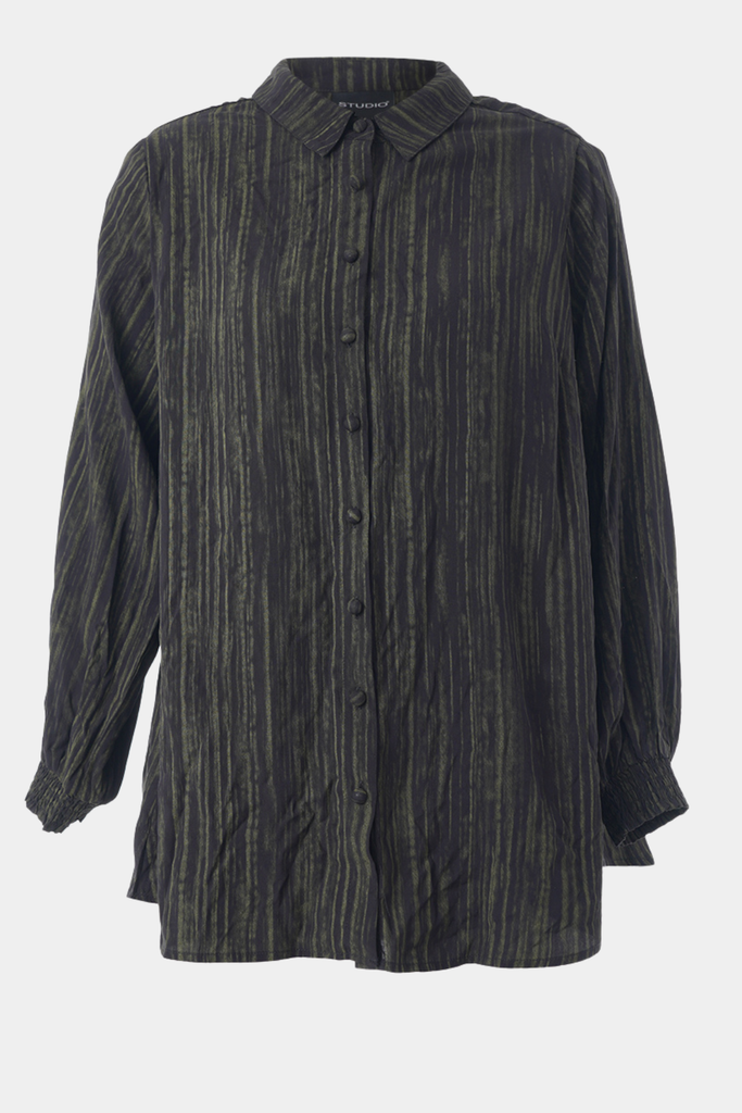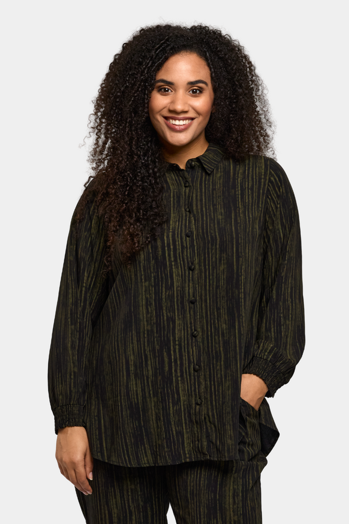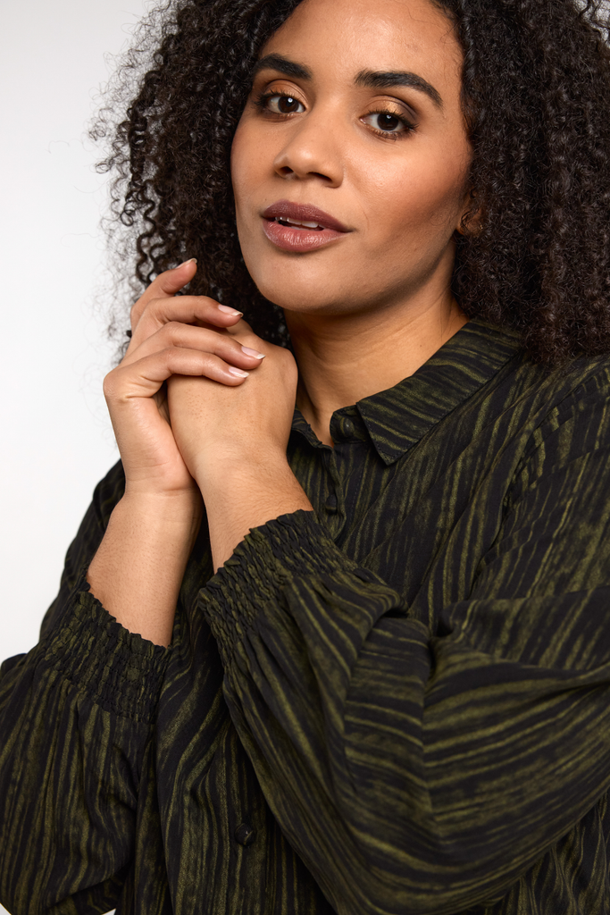 Smuk og elegant skjorte fra Studio i en meget smuk print i sort og olivengrøn
