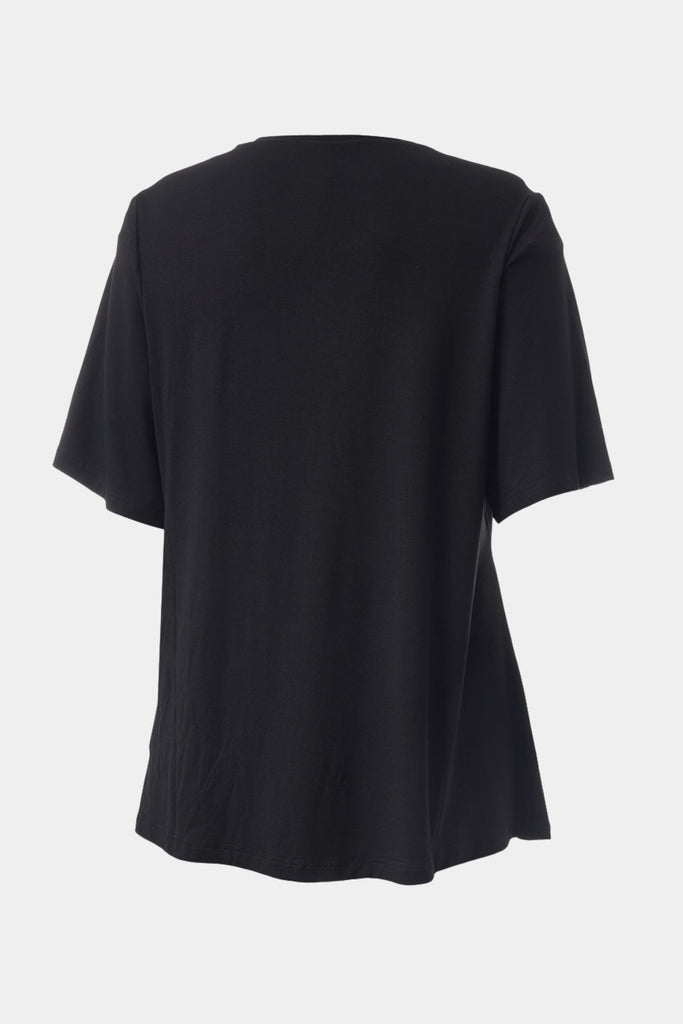 En blød og behagelig T-shirt fra Studio, fremstillet i 95% viskose og 5% elastan. Materialet giver et let stræk, høj komfort og et flot, naturligt fald. Modellen har en skøn A-facon, rund hals og korte ærmer, hvilket gør den nem at style til både jeans og bukser.