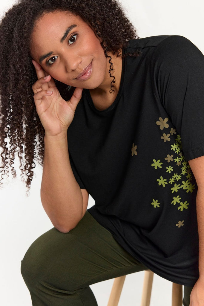 T-shirt fra Studio i viskose med stretch og grafisk print