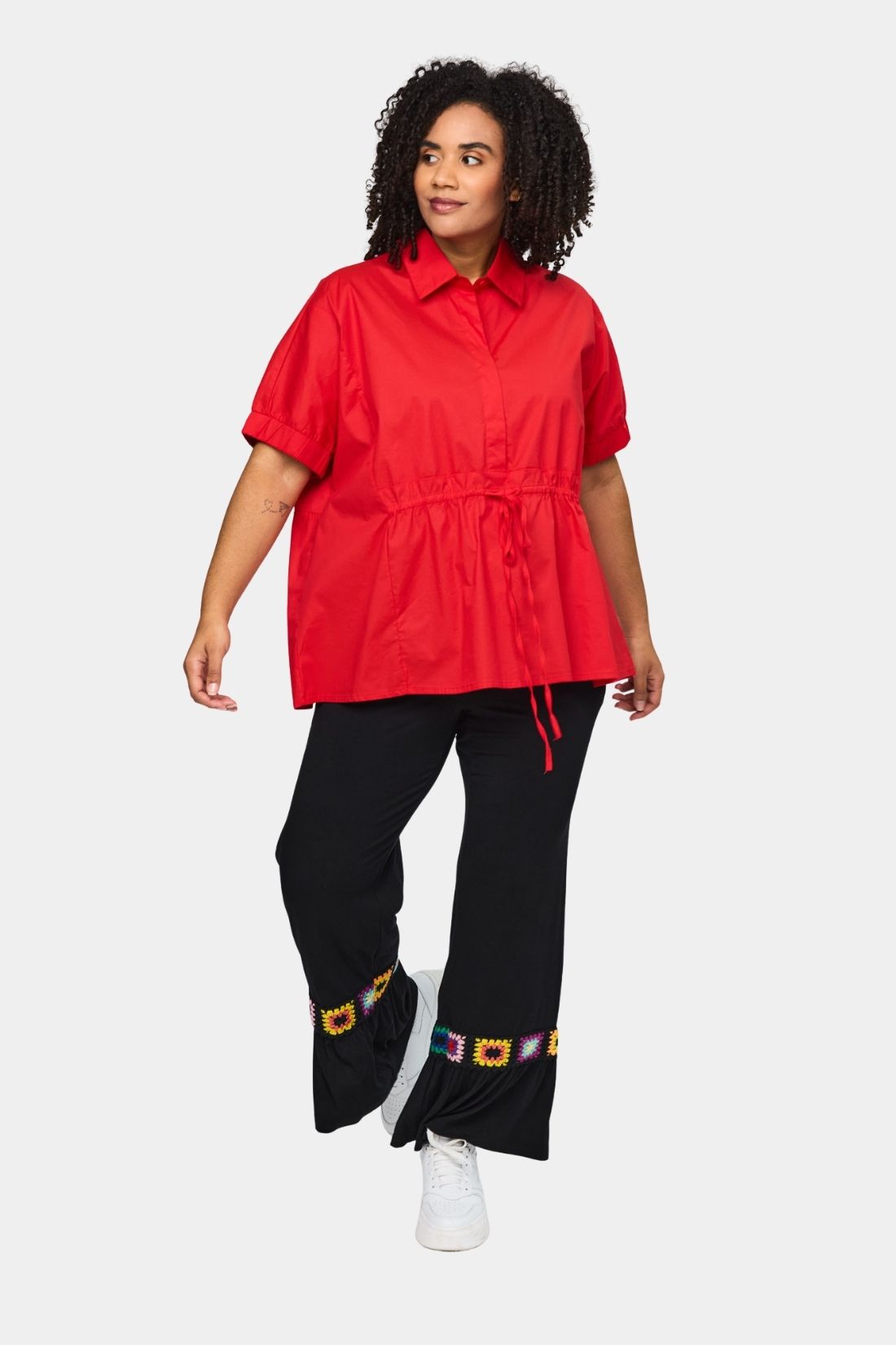En skjorte fra Studio i poplin bomuld med et enkelt og afslappet udtryk der gør den nem at bruge i hverdagen. Den lige silhuet falder let omkring kroppen og giver en behagelig pasform, mens bindebåndet i taljen giver mulighed for at skabe mere facon. En skøn skjorte der kombinerer komfort og et roligt feminint look.