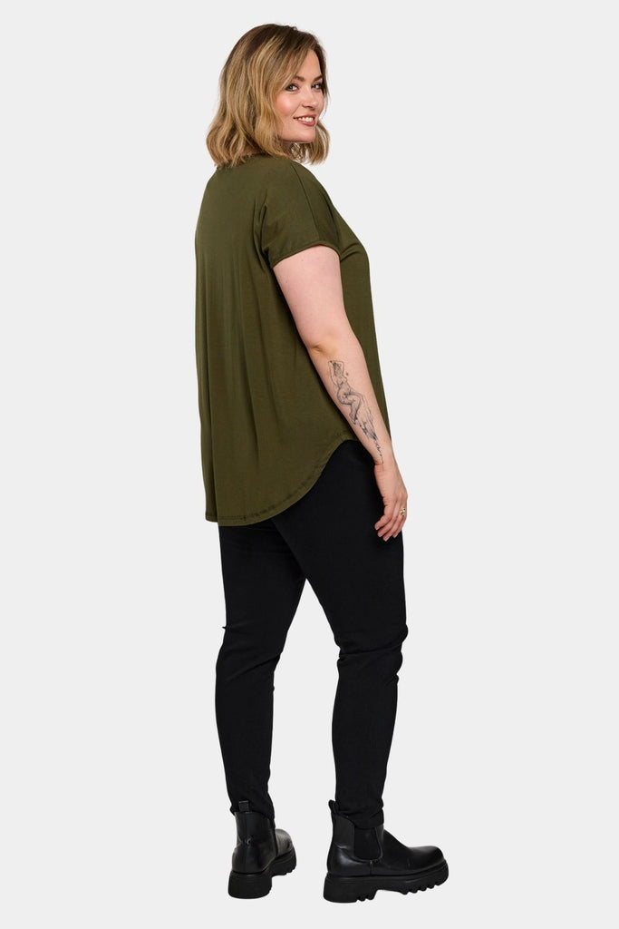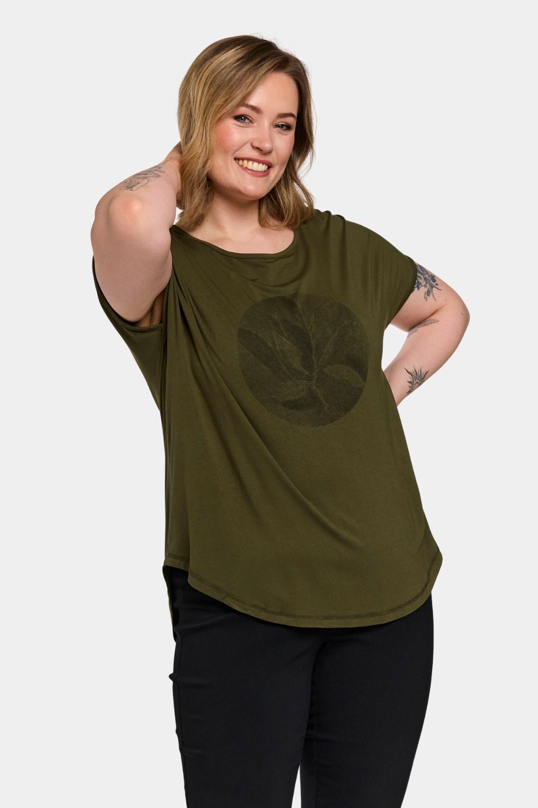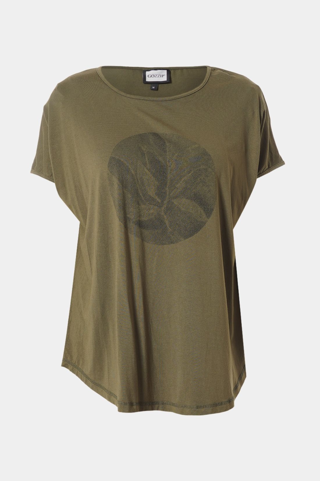 Gitte t-shirt fra Gozzip i olivengrøn med print