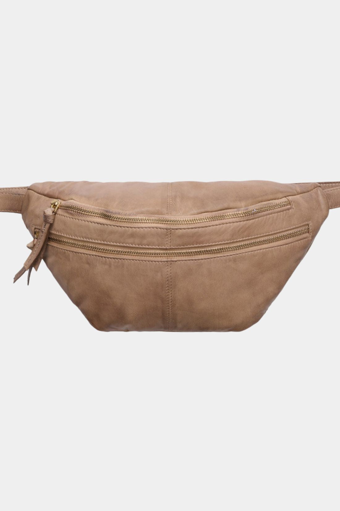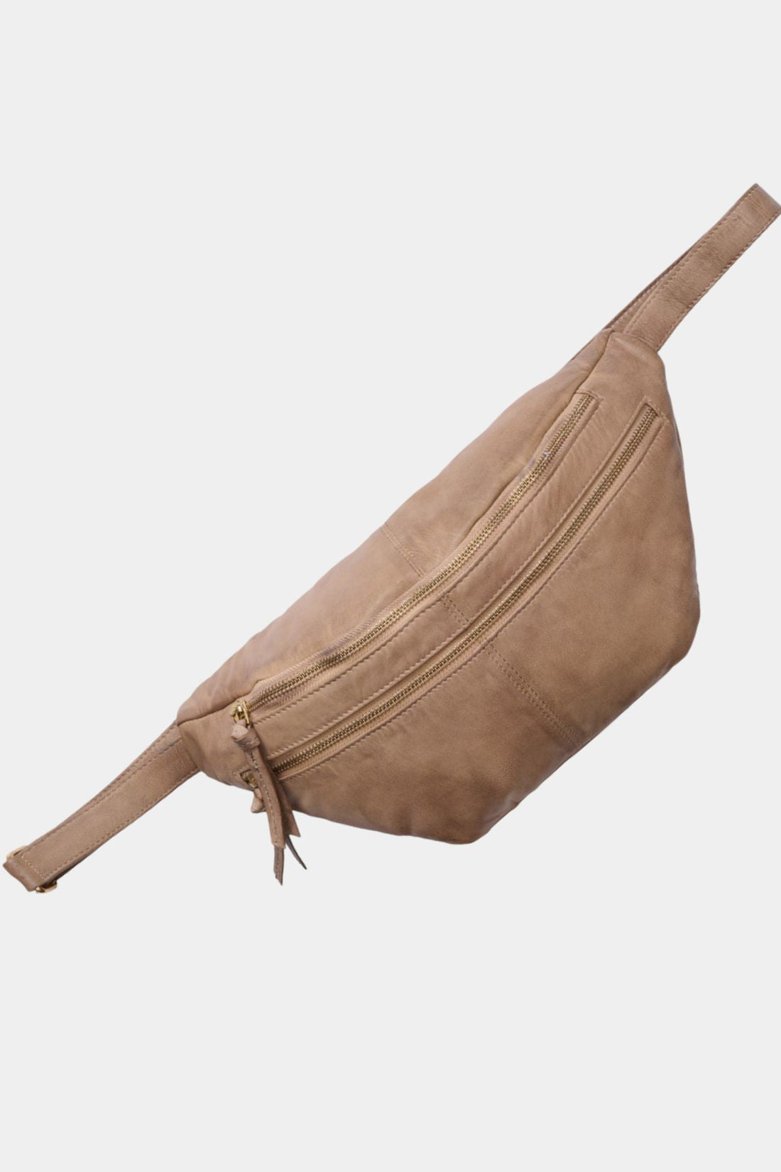Rummelig bæltetaske i blødt skind, som er ideel at bruge på skrå over overkroppen.