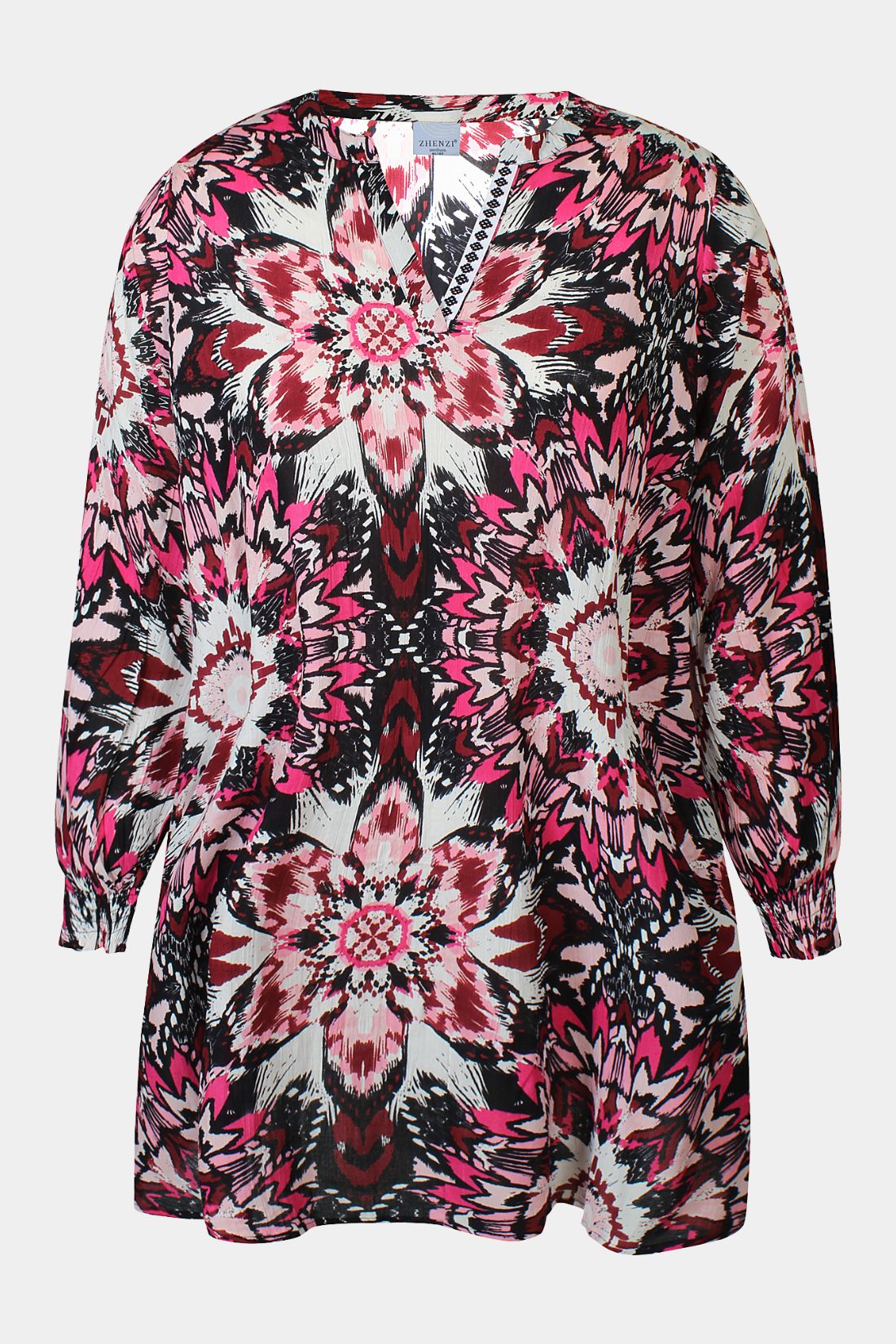 ANAIS tunika fra Zhenzi med print, lommer og smockærmer