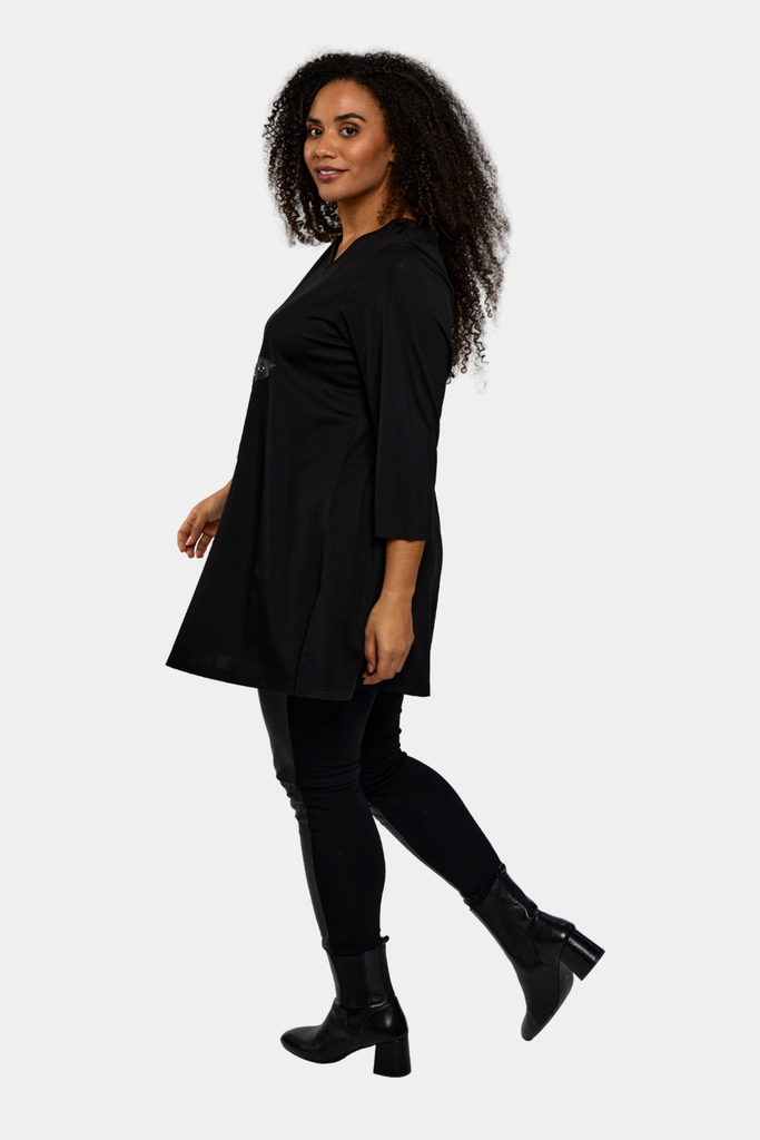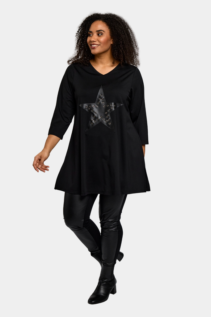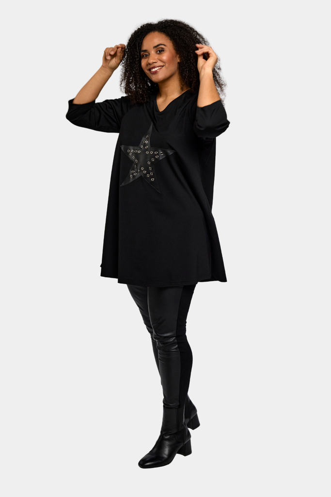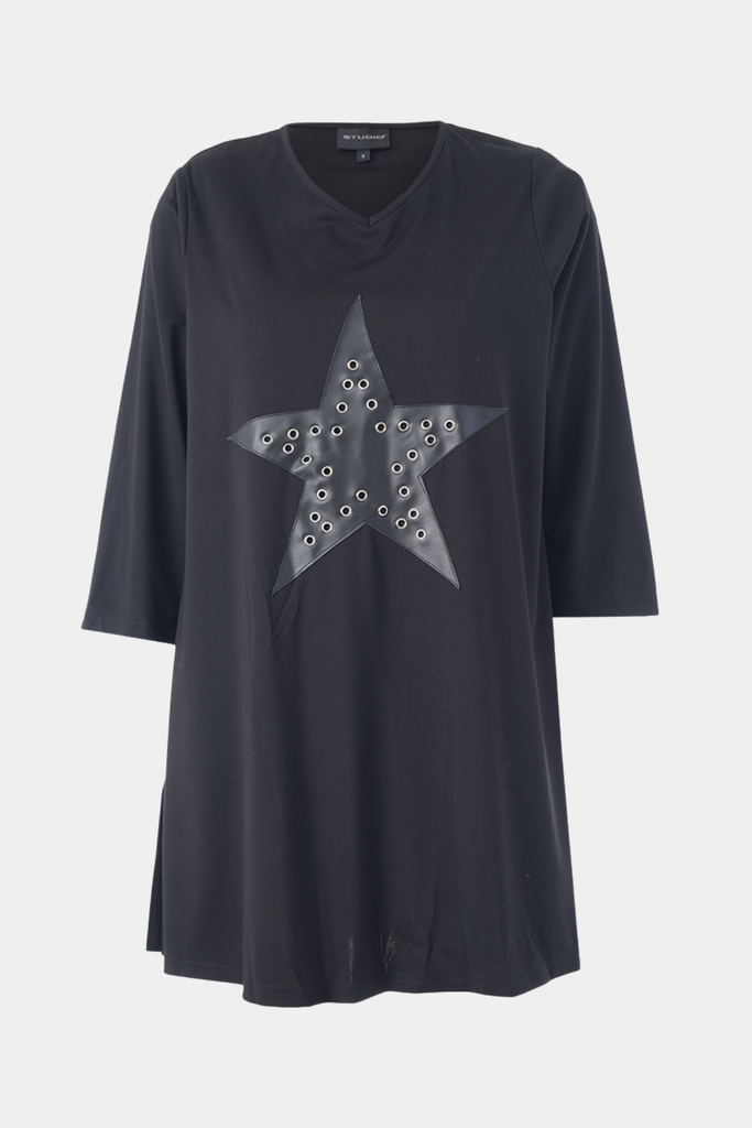 En elegant tunika fra Studio i viskosejersey som giver en fleksibel og komfortabel pasform med et glat udtryk. Smuk stjerne på forsiden i fakeskind med nitter