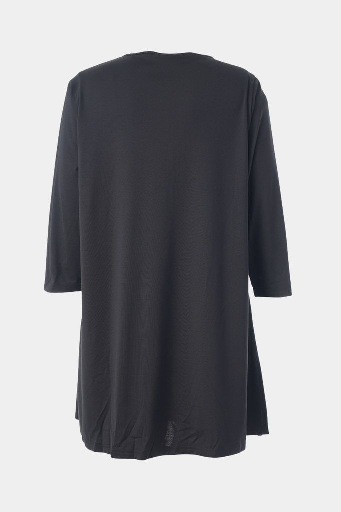 Tunikaen har lange ærmer, V-udskæring og et længere snit, der gør tunikaen velegnet både til leggings og bukser.