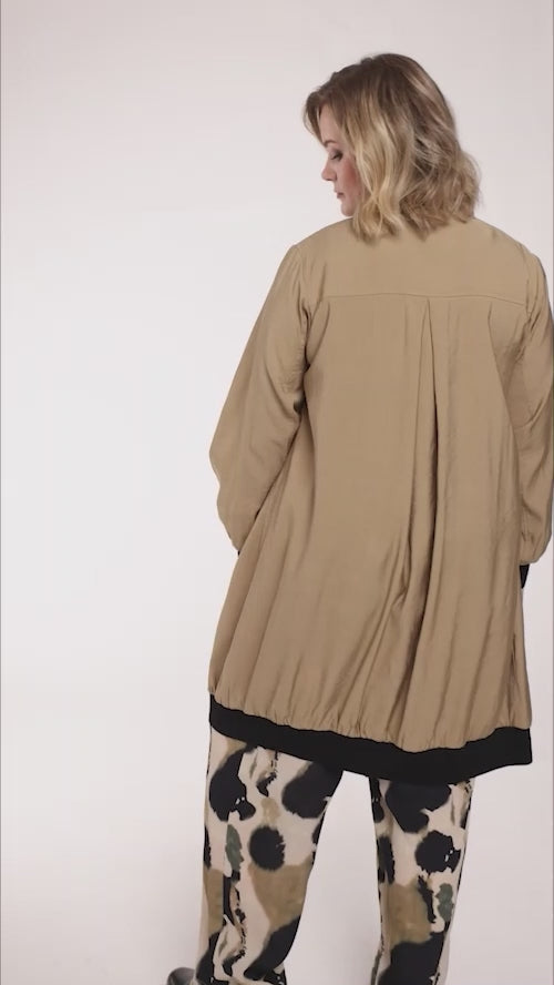 Ellinor cardigan fra Gozzip i sandfarve med sort detaljer