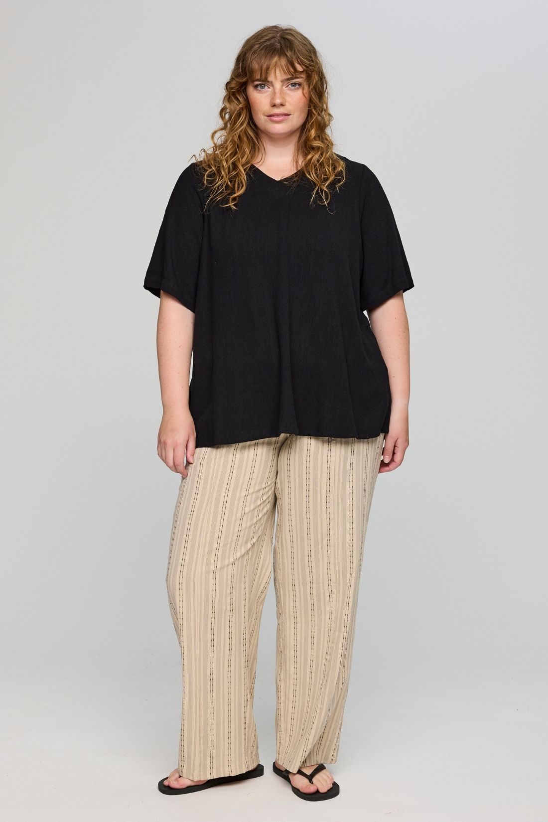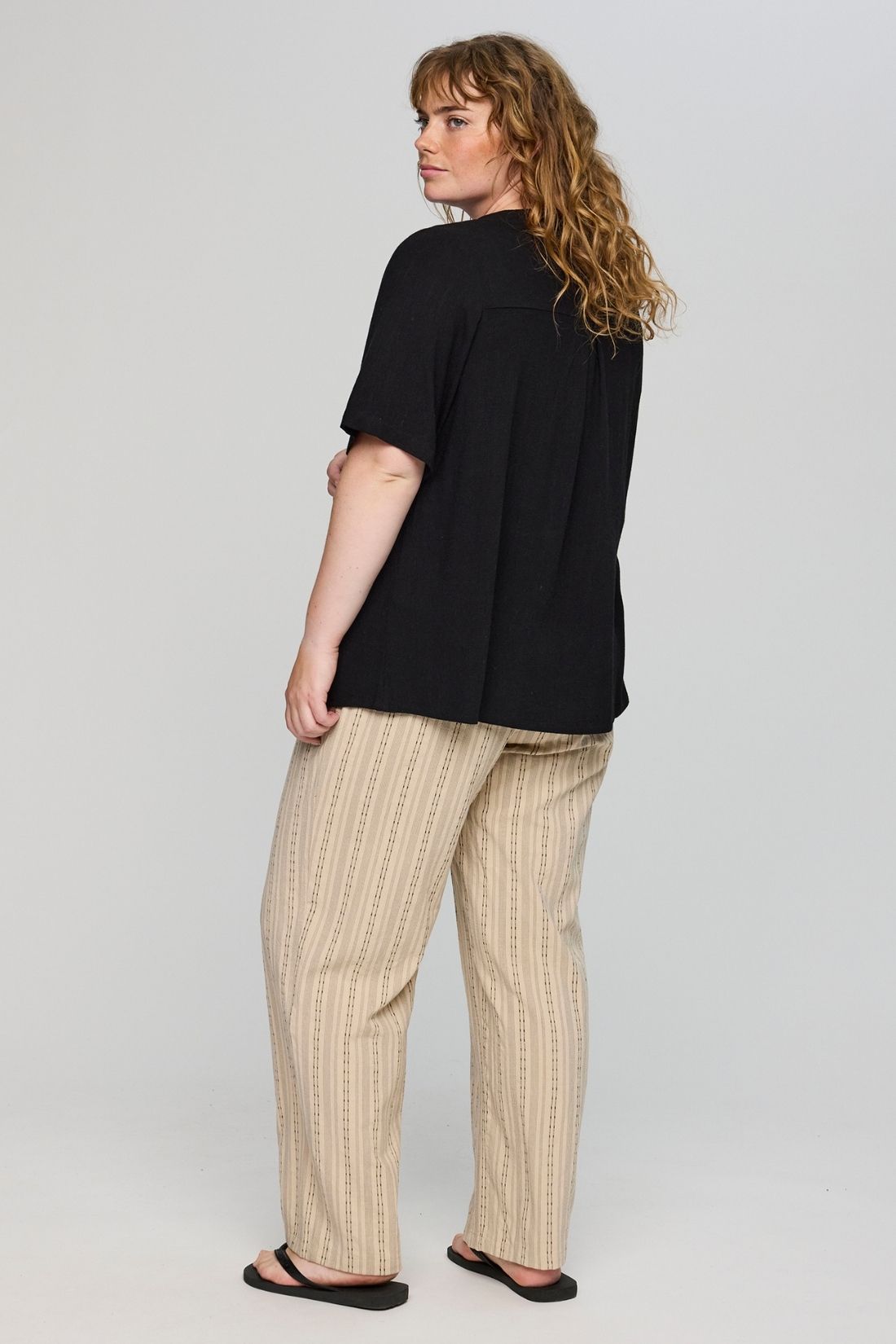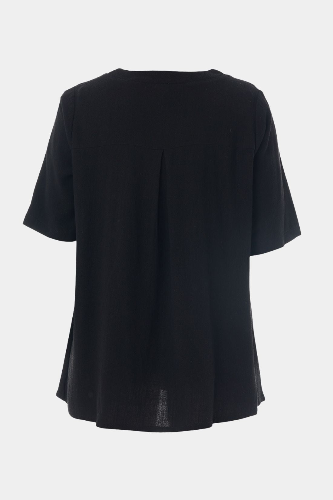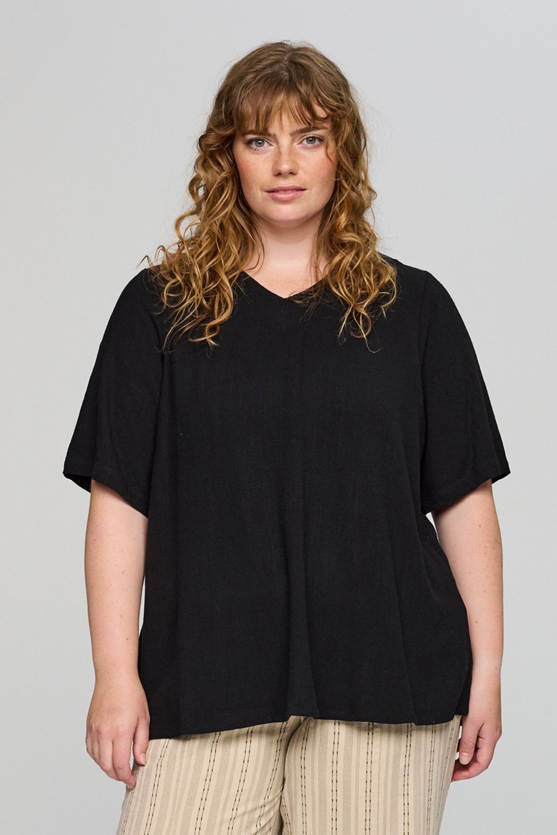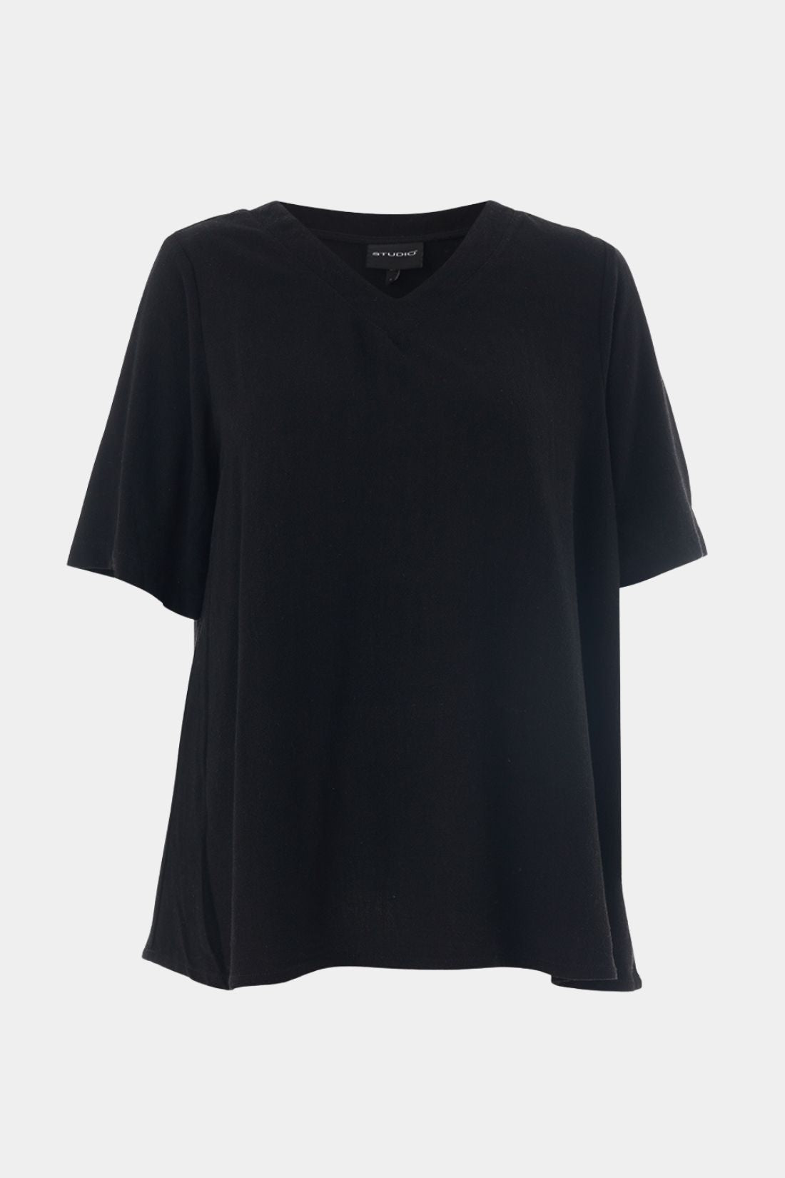 Bluse fra Studio i en enkel og elegant stil, der passer perfekt ind i enhver garderobe. Den rene farve og lette viskose hør kvalitet gør den nem at style – både til hverdag og mere afslappede anledninger.