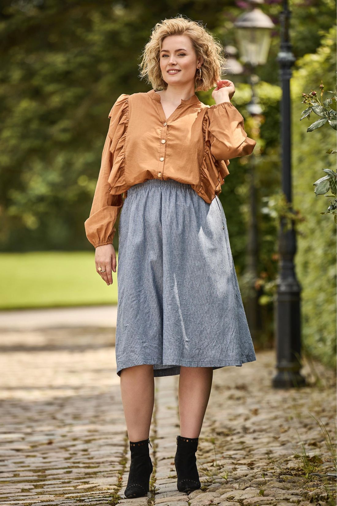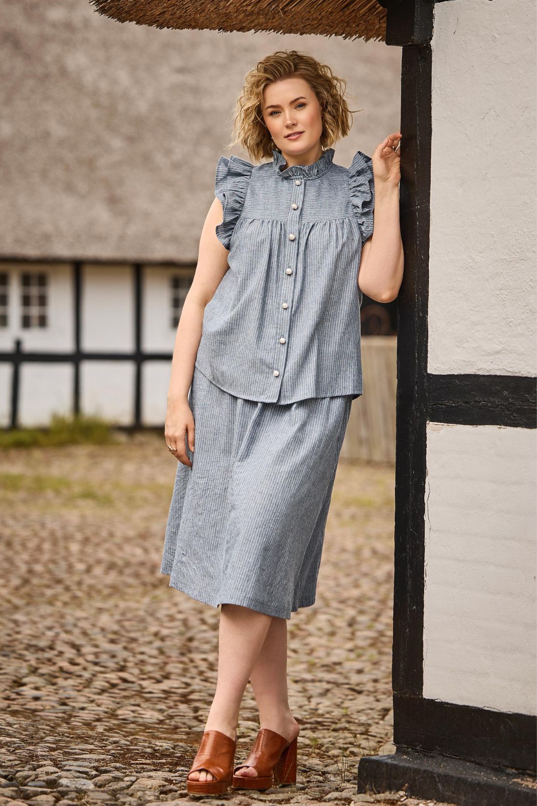 Selma nederdel fra Zoey i smuk stribet bomuld