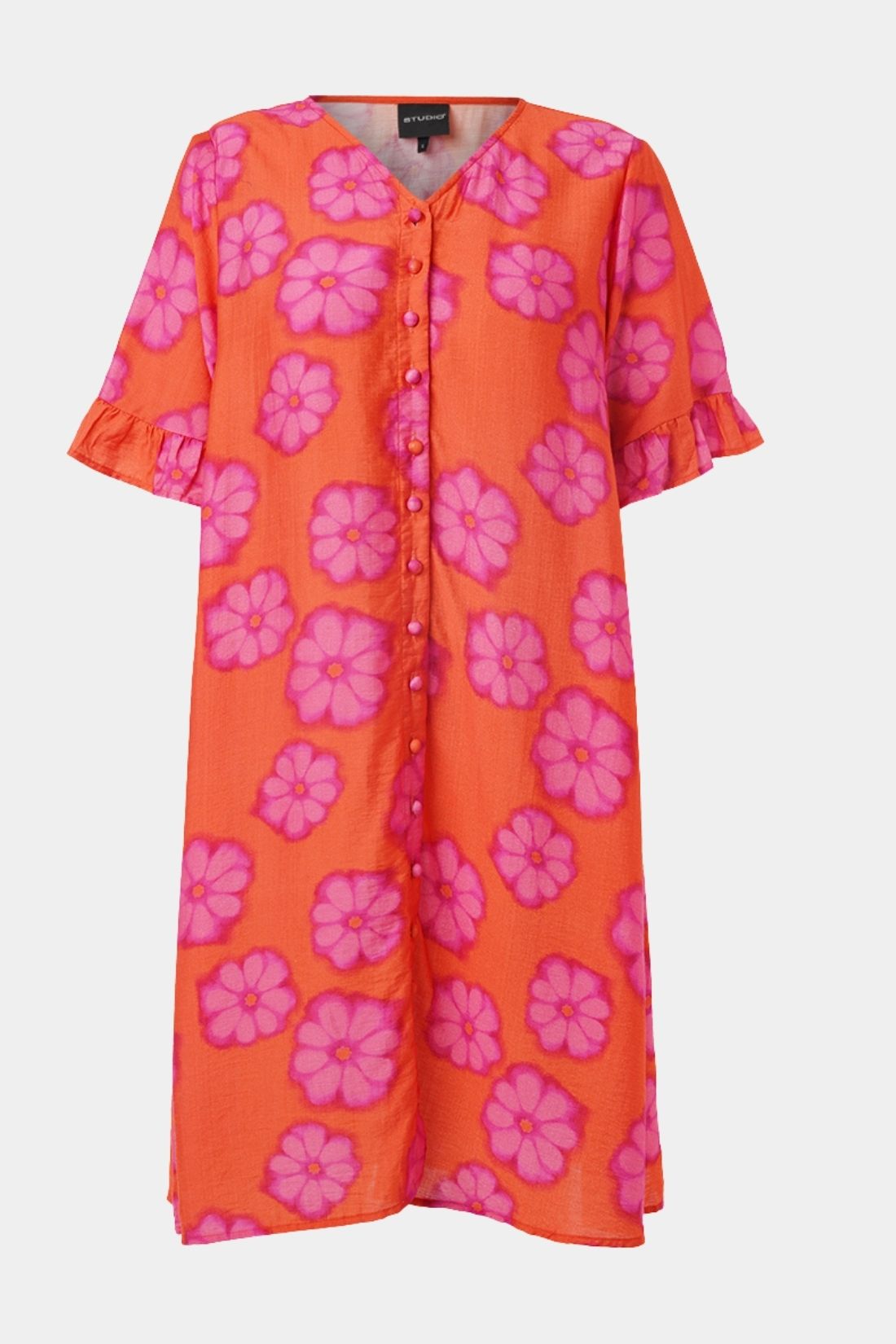 Kjole fra Studio i et farverigt og feminint print, der skaber et friskt og sommerligt look. Den lette kvalitet og løse pasform gør den behagelig at have på, mens de fine detaljer giver et elegant udtryk.