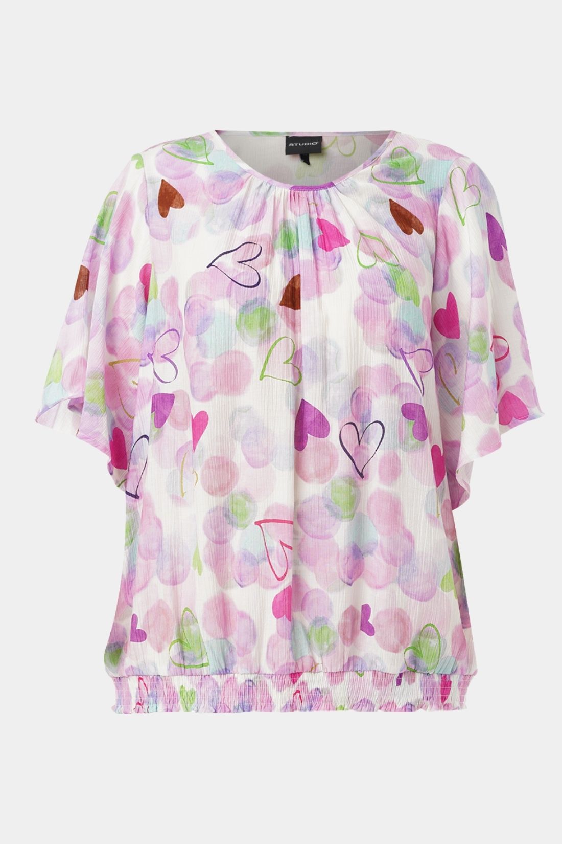 Bluse fra Studio i et let og feminint design med fine hjerteprints i bløde farver. Den luftige kvalitet og den elastiske afslutning giver en flot, let blusende effekt og en behagelig pasform.