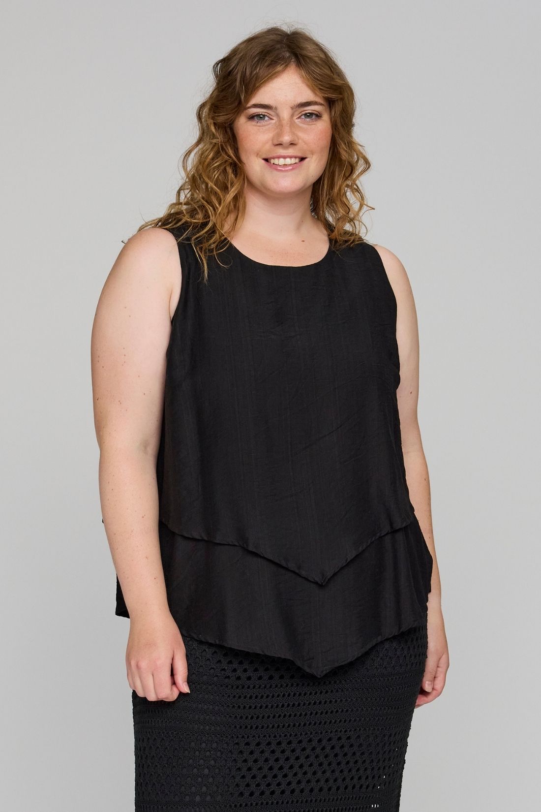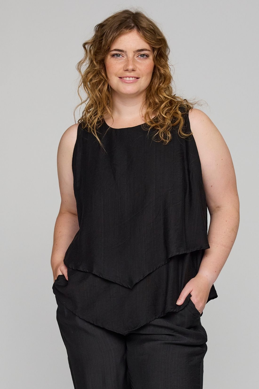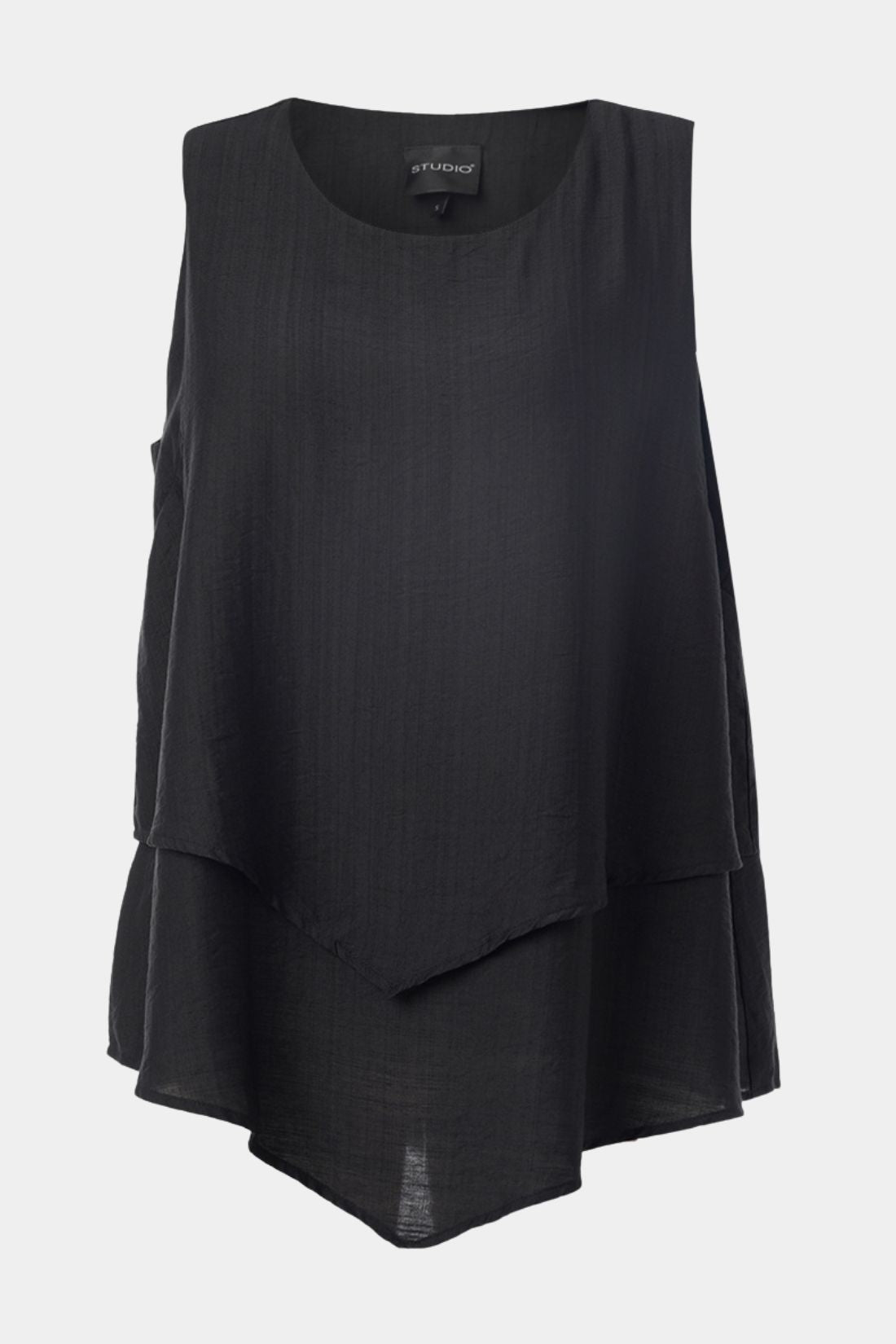 Top fra Studio med et stilrent og moderne lag-på-lag look, der giver et flot og levende udtryk. Den løse pasform og lette kvalitet gør den behagelig at have på, mens det asymmetriske snit tilfører et elegant twist.